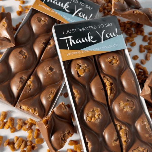 Family-owned and proudly independent, we create generously topped bars, beautifully boxed gift collections and signature giant buttons, finished by hand so every piece looks as good as it tastes.