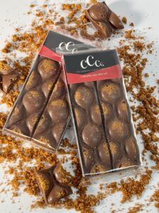 Creamy milk chocolate meets caramelised biscuit pieces, embedded into the top of every dome for a deep, toasty sweetness and satisfying crunch.