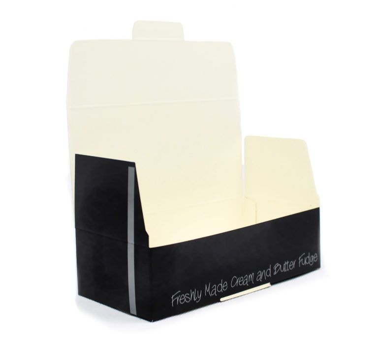 Text on the inside of the lid reads: “Freshly made Cream & Butter Fudge”