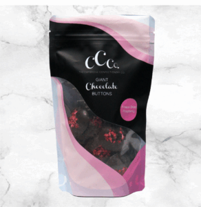 Ingredients: Cocoa Mass, Sugar, Cocoa Butter, Freeze Dried Raspberries, Emulsifier: SOYA Lecithin (E322), Natural Vanilla Flavouring.