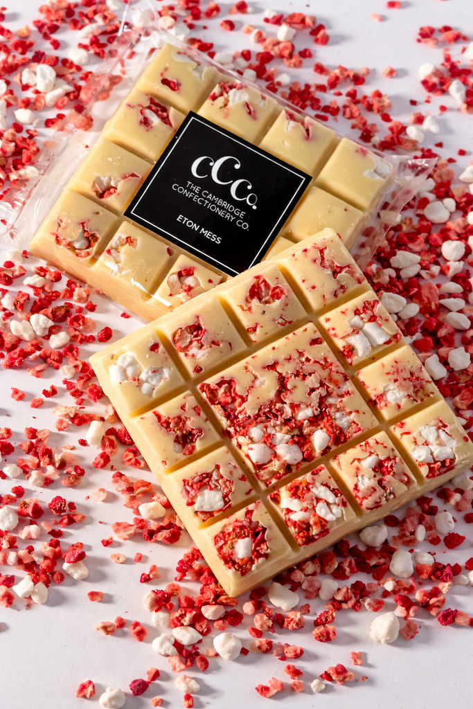Ingredients: Sugar, Cocoa Butter, Whole MILK Powder, Freeze Dried Strawberries, Meringue Pieces (Sugar Pasteurised EGG White), Emulsifier: SOYA Lecithin (E322), Natural Vanilla Flavouring.