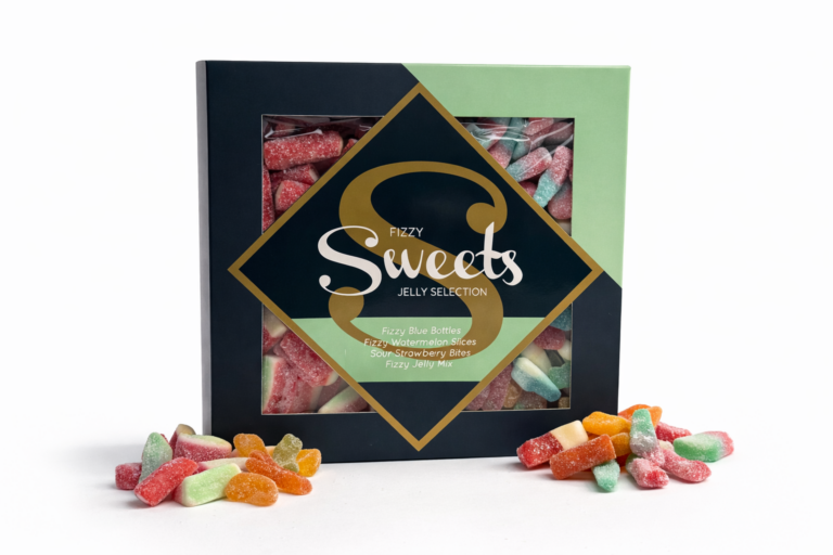FIZZY JELLY MIX: Glucose Syrup, Sugar, Gelatine*, Modified Potato Starch, Acids: Citric Acid, Flavourings: Fruit and Vegetable Concentrates: Lemon, Safflower, Radish, Tomato, Apple, Pumpkin, Carrot, Blackcurrant; Colours: E100, E120*, E133, E160a E160c, E171. May contain traces of MILK.