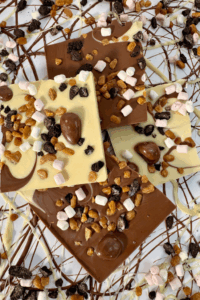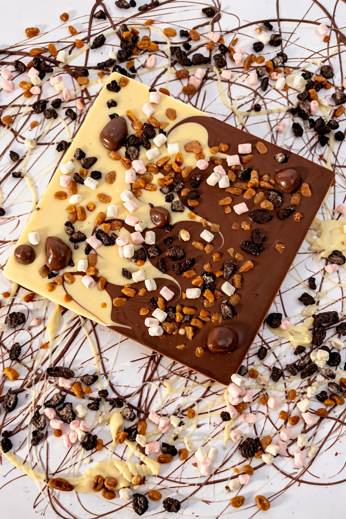 Ingredients: Sugar, Cocoa Butter, Whole MILK Powder, Cocoa Mass, Chocolate Honeycomb Bites (MILK Chocolate (77%) (Sugar, MILK Powder, Cocoa Butter, Cocoa Mass, Vegetable Fat (Palm), Whey (MILK), Emulsifier: Sunflower Lecithin (E322), Flavouring, Glazing Agents: Gum Arabic, Shellac E904), Honeycomb (23%) (Sugar, Glucose, Sodium Bicarbonate, Rice Flour)), Toffee Pieces (Sugar, Glucose Syrup, Vegetable Fat (Shea Oil, Palm Oil, Emulsifier E322), Palm Oil, Water, Butter (MILK), Vegetable Oil (Palm Oil Fractions), Salt, Emulsifier E322 (SOYA), Plain Caramel E150a, Raising Agent: E500ii), Cookie Pieces (WHEAT Flour, Sugar, Vegetable Oils (Palm Oil, Rapeseed Oil), Fat Reduced Cocoa Powder (4.5%), WHEAT Starch, Glucose-Fructose Syrup, Raising Agents: Potassium Carbonates, Ammonium Carbonates, Sodium Carbonates; Salt, Emulsifiers: SOYA Lecithin, Sunflower Lecithin; Flavouring), Marshmallows (Sugar, Water, Glucose, Fructose Syrup, Gelatine, Anti-caking Agent: Maize Starch; Flavouring, Colouring: E162) Emulsifier: SOYA Lecithin (E322), Natural Vanilla Flavouring.