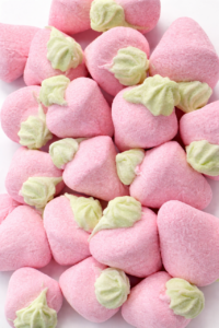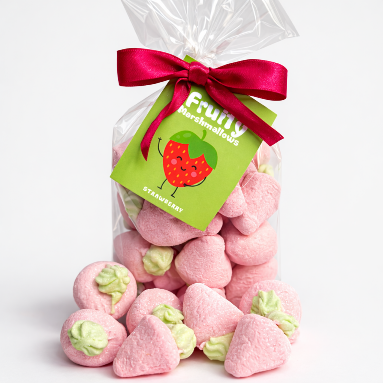 Soft strawberry-shaped marshmallows with a sweet strawberry flavour and a light jelly centre. Fluffy, fruity and full of charm, they make a great treat for sharing or gifting.