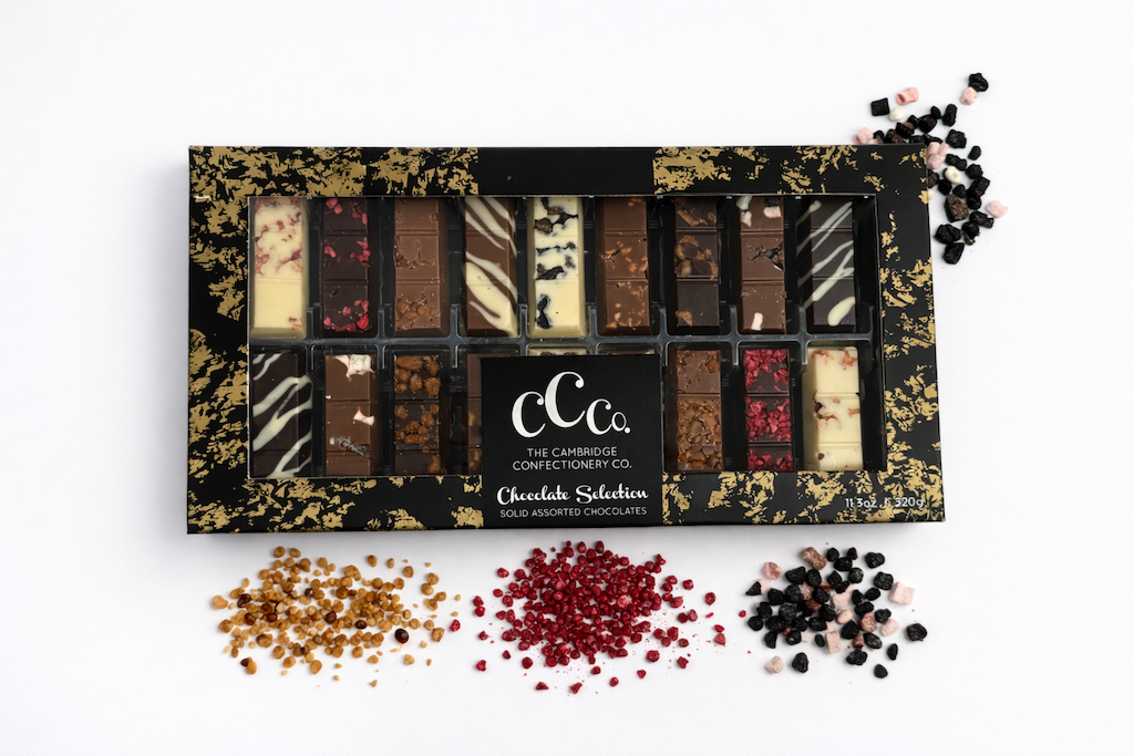 Crafted in milk and dark chocolate with distinctive finishes for contrast and balance.