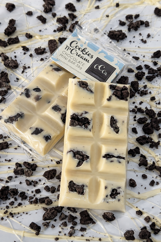 Ingredients: Sugar, Cocoa Butter, Whole MILK Powder, Cookie Pieces (WHEAT Flour, Sugar, Vegetable Oils (Palm Oil, Rapeseed Oil), Fat Reduced Cocoa Powder (4.5%), WHEAT Starch, Glucose-Fructose Syrup, Raising Agents: Potassium Carbonates, Ammonium Carbonates, Sodium Carbonates; Salt, Emulsifiers: SOYA Lecithin, Sunflower Lecithin; Flavouring), Emulsifier: SOYA Lecithin (E322), Natural Vanilla Flavouring. White Chocolate Contains;